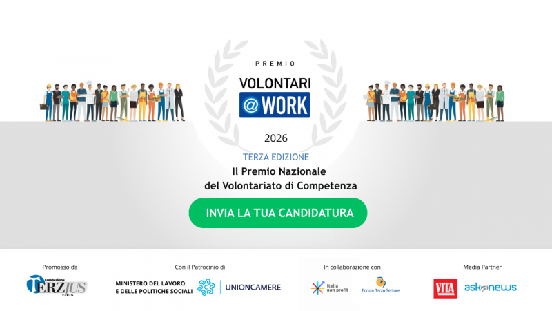 C’è tempo fino al prossimo 6 marzo per candidarsi al Premio Volontari@work, l’iniziativa organizzata da Terzjus che riconosce e mette in luce le migliori esperienze di volontariato aziendale realizzate negli ultimi tre anni. Il volontariato di competenza, infatti, continua a crescere e a mostrare quanto la collaborazione tra imprese e Terzo settore possa produrre valore condiviso.